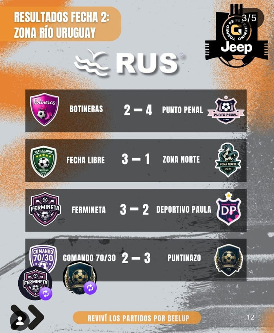 Continúa disputándose el exitoso Torneo de F5 femenino “Copa Jeep” en las canchas del complejo Zona Gol, ubicado en Galarza y José Hernández, de Concepción del Uruguay.