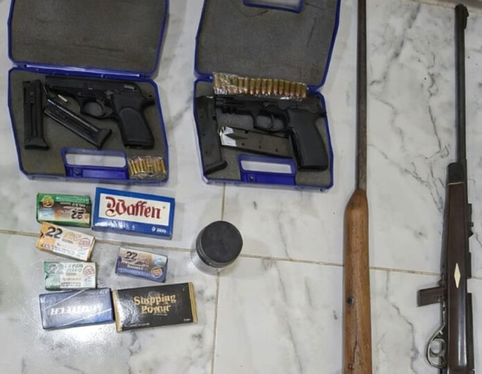 Posteriormente, y con la intervención del Juzgado de Paz de dicha localidad, se llevó a cabo el Allanamiento y Requisa Domiciliaria en la vivienda del apuntado, donde se obtuvo resultados positivos para la causa, procediéndose al Secuestro de un Arma de Fuego tipo pistola calibre .22 mm LR, marca Bersa Thunder, con dos cargadores; un Arma de Fuego tipo pistola, marca Bersa 9 mm, con dos cargadores; gran cantidad de cartuchos de diferentes calibres; un Arma de Fuego tipo Escopeta tiro a tiro, marca Centauro y un (01) Arma de Fuego tipo Carabina cal .22 largo, marca Rubi Extra, elementos que fueron formalmente Secuestrados y puestos bajo resguardo a consideración de la Magistratura actuante.
