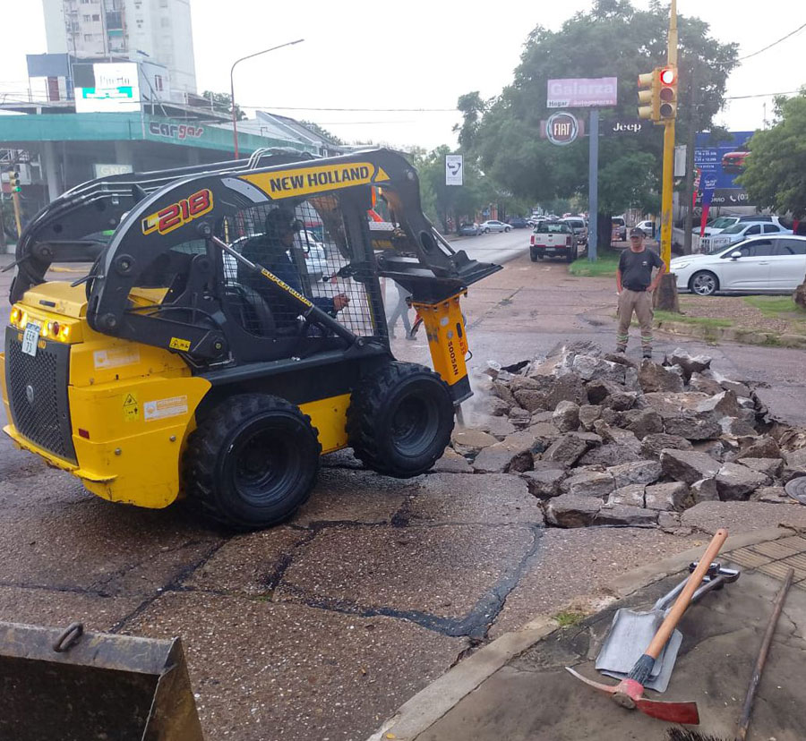 Paralelamente, con equipos propios, el municipio desarrolla una actividad similar en avenidas de asfalto, como los ejecutados en los accesos Juan José Bruno y José Luis Rodríguez Artusi, y arterias del barrio Santa Teresita.