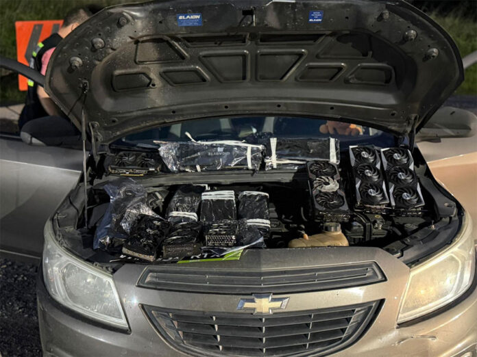 A pesar de los intentos por ocultar la mercadería, la exhaustiva revisión del personal de Prefectura permitió hallar 13 placas de video (hardware de alta gama) escondidas en lugares inusuales del rodado: