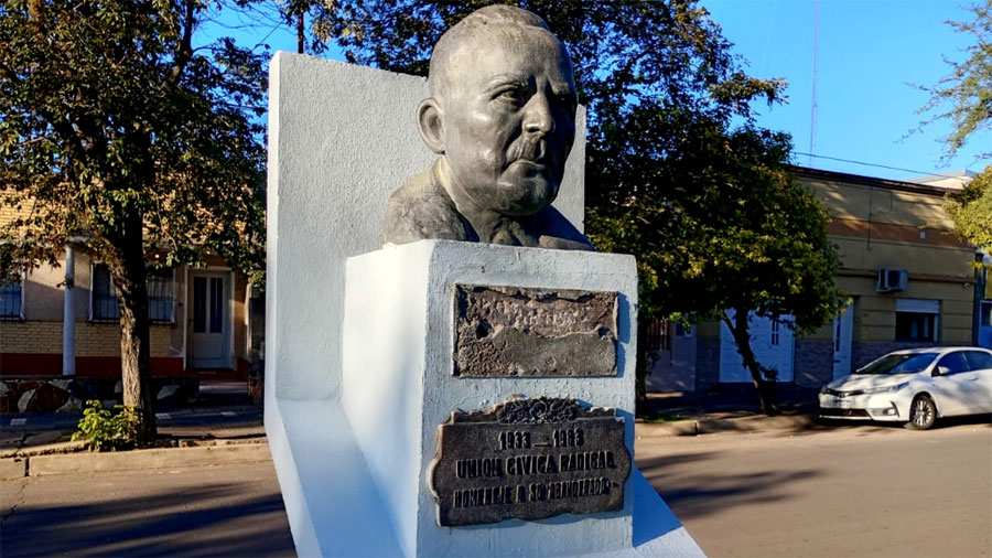 El busto del expresidente Hipólito Yrogoyen, ubicado en el boulevard con su nombre, apareció sin su placa alusiva este jueves. Se trató de un hecho vandálico, según denunciaron desde la UCR ruguayense.