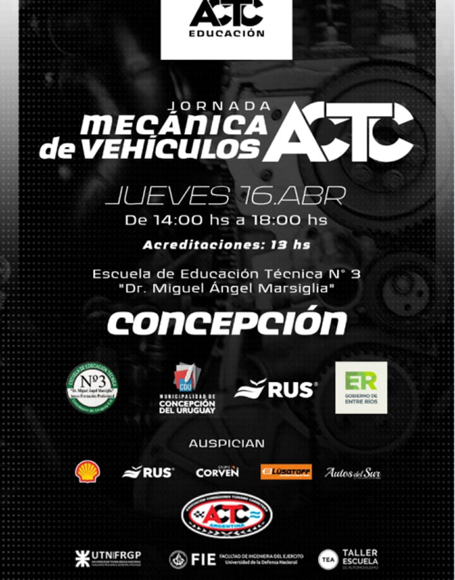 Durante la Jornada de Mecánica, ingenieros y especialistas de ACTC Educación abordarán contenidos vinculados al funcionamiento, la ingeniería y la tecnología de un Turismo Carretera, con la presencia de un auto de competición para explicación en vivo.