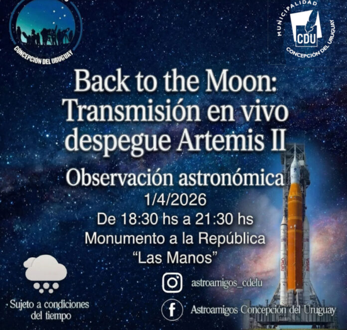 Astroamigos Concepción del Uruguay, en su tarea de llevar la Astronomía y ciencias anexas al ciudadano ha planeado compartir el momento instalando una pantalla gigante, al aire libre para que los conciudadanos puedan ver el despegue de la misión Artemis III.