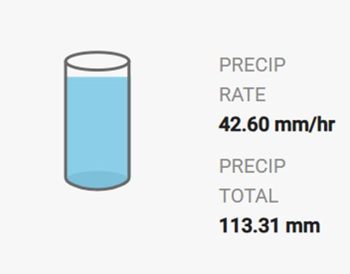 En último registro de las 20:50, indicaba una cantidad de 112milímetros y continuaba creciendo.