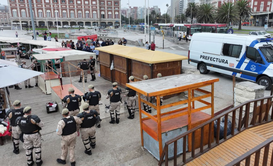 Tras estas acciones, y a solicitud de la Secretaría de Seguridad del Municipio de General Pueyrredon, Prefectura colaboró en horas de la madrugada de este miércoles con personal y medios para brindar seguridad perimetral en el predio de la Unidad Turística Fiscal “Paseo de Compras Bristol”, donde empleados de la comuna procedieron al desarme de la totalidad de los puestos feriantes que se encontraban instalados en el lugar.