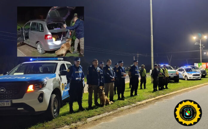 Bajo los lineamientos de AMERIPOL, las fuerzas de seguridad desplegaron controles de identificación y búsqueda de narcóticos en el ingreso a la ciudad. El operativo contó con el apoyo de canes detectores de sustancias.