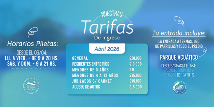El principal atractivo de relax de «La Histórica» actualizó su cuadro de ingresos para este mes. Con una segmentación que beneficia a los habitantes de la provincia y beneficios para los más chicos, el complejo detalló cómo funcionarán las piletas y el sector de juegos acuáticos.