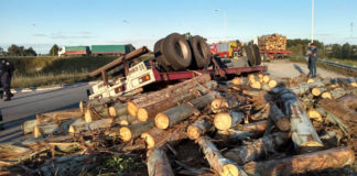 Vuelco de un acoplado en la Autovía