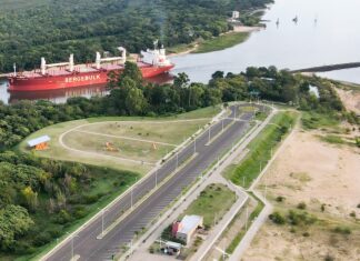 El buque Berge Annopuri carga en el puerto de Concepción del...