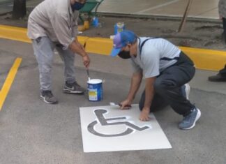 Pensando en los demas. Pintan sector especial de estacionamientos para discapacitados