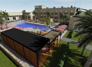 Bandera a cuadros para el lanzamiento de la construcción del hotel...