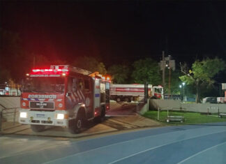 Colaboración de Bomberos Voluntarios en el lavado de pista de atletismo