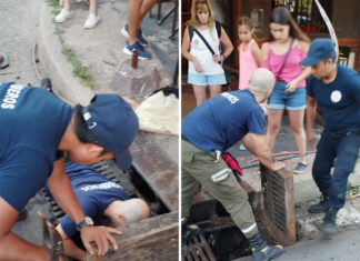 Duro trabajo de bomberos para tratar de recatar un gato