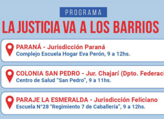 “La Justicia va a los barrios” estará en Paraná, Chajarí y...