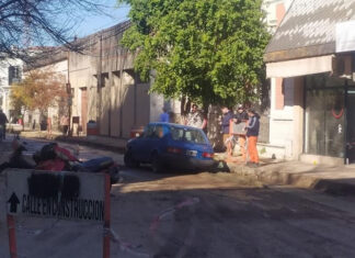 Pleno centro: Entró contramano y quedó encajado en el hormigón recién...