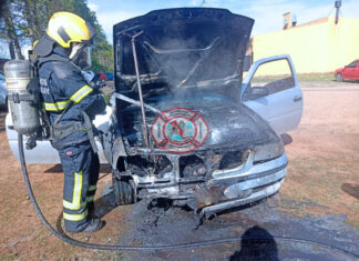 Principio de incendio de un auto en la cancha de María...
