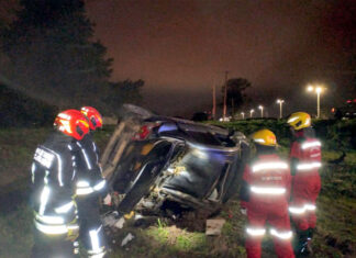 Despiste y vuelco de un auto en el acceso a Concepción...