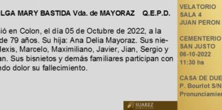 Olga Mary Bastida vda. Dr Mayoraz QEPD