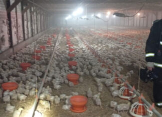 Principio de incendio en una granja de pollos