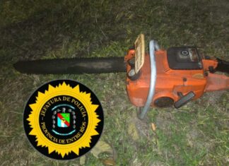 Escapó de la Policia y abandonó una motosierra