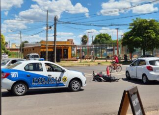 Violento choque en bulevar Yrigoyen y Ameghino dejó un motociclista lesionado