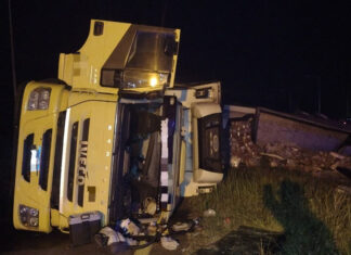 Vuelco de un camión cargado con pollo congelado en la ruta...
