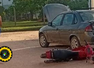 Choque entre un auto y una moto dejó un lesionado leve