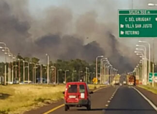 Bomberos combaten gran incendio en zona de Colonia Suiza (departamento Colón)