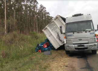 Vuelco del semiacoplado de un camión en Autovía Gervasio Artigas