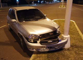 Llamativo: Auto despistó y chocó una luminaria en la Isla del...