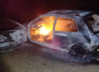 Incendio de un automóvil en la Autovía Gervasio Artigas