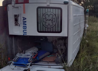 Se despistó y volcó una ambulancia de Herrera y hubo varios...