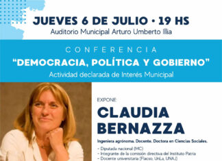 La Dra. Claudia Barnazza dictará la conferencia “Democracia, Política y Gobierno”