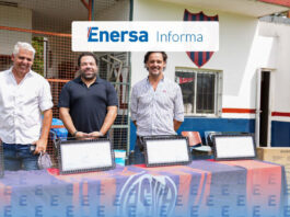 Enersa entregó luminarias al Club San Lorenzo de Concordia para mejorar el uso de su cancha