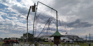 Comenzó la reconstrucción del árbol de navidad de Pueblo Belgrano