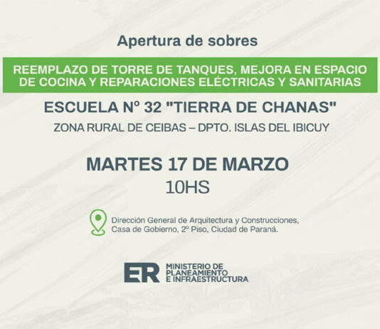 Se realizará la apertura de sobres para ejecutar obras en escuela de Ceibas