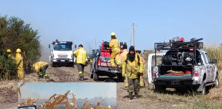 Incendio de magnitud en campos de maizal: Tres dotaciones de bomberos...